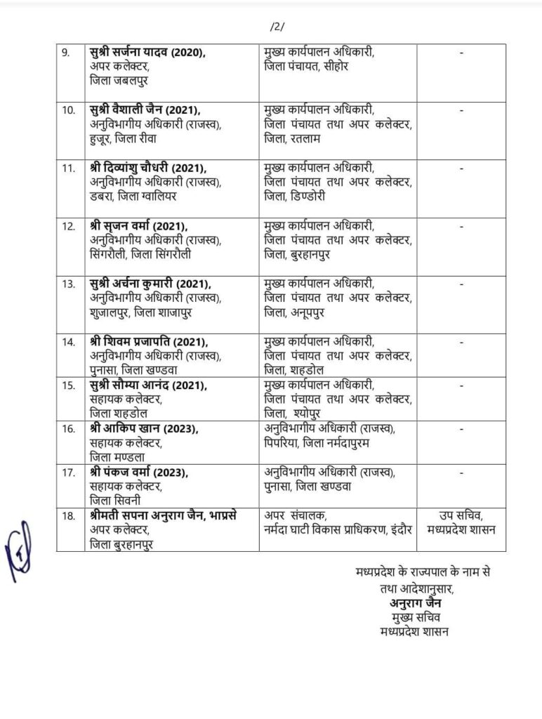 सामान्य प्रशासन विभाग द्वारा भारतीय प्रशासनिक सेवा के अधिकारियों की नवीन पदस्थापना के आदेश जारी