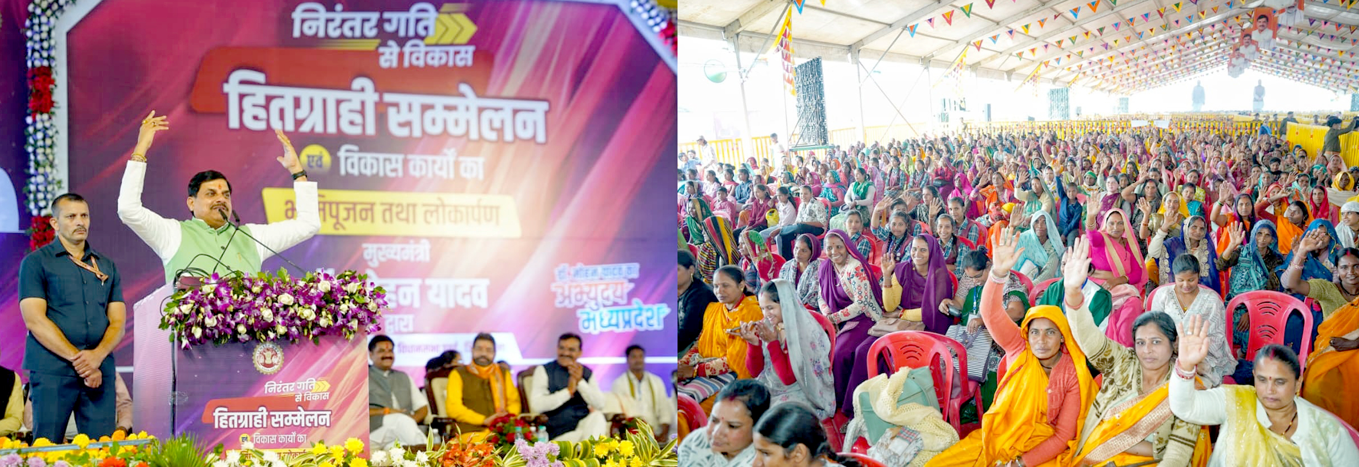 मुख्यमंत्री डॉ. यादव बुधवार को पन्ना जिले की पवई विधानसभा क्षेत्र की ग्राम पंचायत शाहनगर में हितग्राही सम्मेलन को संबोधित कर रहे थे। मुख्यमंत्री डॉ. यादव ने यहां करीब 83 करोड़ रूपए की लागत वाले 14 विकास कार्यों का लोकार्पण एवं भूमिपूजन किया। इसमें 9 करोड़ रूपए की लागत से बनी बिसानी-श्यामगिरी-कल्दा-सलेहा वाया मैन्हा मार्ग के उन्नयन कार्य का लोकार्पण एवं 74 करोड़ रूपए की लागत से बनने वाले 13 विकास कार्यों का भूमिपूजन शामिल हैं। इसके अंतर्गत मुख्यमंत्री ने 4.25 करोड़ रूपए की लागत से बनने वाले पवई में तिघरा बैराज का भूमिपूजन किया। मुख्यमंत्री डॉ. यादव ने दीप प्रज्ज्वलन एवं कन्या पूजन कर हितग्राही सम्मेलन की शुरूआत की। कार्यक्रम का शुभारंभ वंदे मारतम् गायन के साथ हुआ। मुख्यमंत्री डॉ. यादव ने कार्यक्रम स्थल पर विभिन्न विभागों द्वारा लगाई गई विकास प्रदर्शनी का अवलोकन किया।