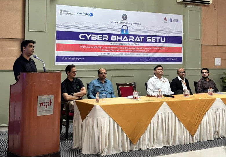 भोपाल, 19 सितंबर। भारत सेतु अभ्यास के दूसरे दिन शुक्रवार को सरकारी विभागों के सीआईएसओ अधिकारियों और वरिष्ठ शासकीय अधिकारियों को व्यावहारिक सायबर सुरक्षा ज्ञान और कौशल प्रदान करने के लिए अभ्यास किये गये। कार्यशाला में विशेषज्ञों ने सरकारी संगठनों को प्रभावित करने वाली सायबर सुरक्षा चुनौतियों पर विस्तार से चर्चा की और प्रतिभागियों को विभागीय एवं संगठनात्मक सुरक्षा मजबूत करने की प्रभावी रणनीतियां बतायी।