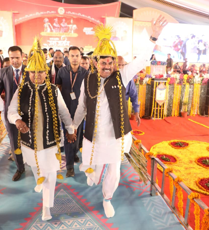 समारोह के आरंभ में राज्यपाल श्री पटेल और मुख्यमंत्री डॉ. यादव का जनजातीय समुदाय की पारम्परिक वेशभूषा और मोर मुकुट पहनाकर आत्मीय स्वागत किया गया। समारोह का शुभारंभ राष्ट्रगीत वंदे मातरम् गायन एवं समापन राष्ट्रगान जन-गण-मन गायन से हुआ।